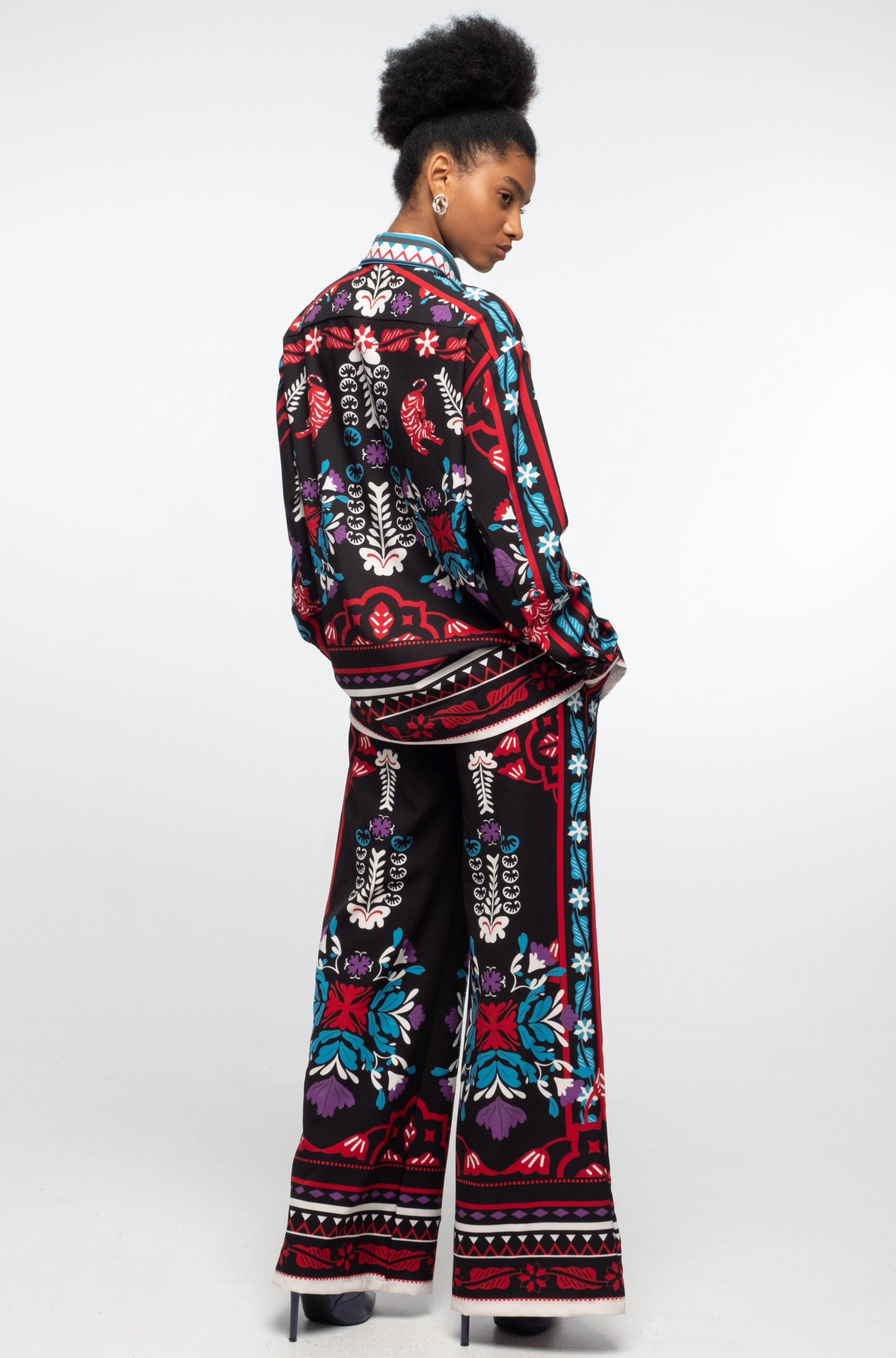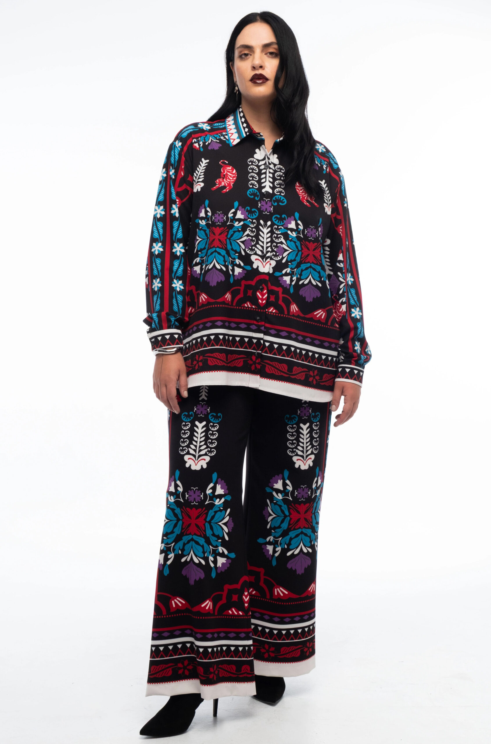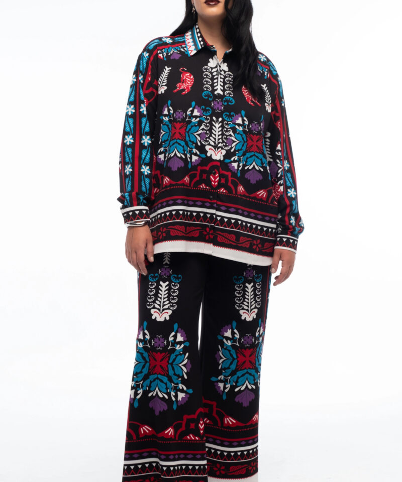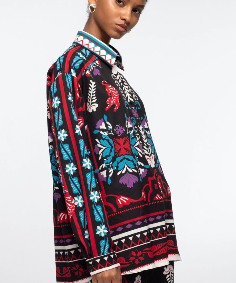 Το Mythical Shirt συνδυάζει το κλασικό στυλ ενός πουκαμίσου με κουμπιά στο μπροστινό μέρος και στις μανσέτες, με μια πιο μοντέρνα, χαλαρή γραμμή. Ξεχωρίζει χάρη στο εντυπωσιακό print του και τις γεωμετρικές του λεπτομέρειες. Φορέστε το με το ασορτί Mythical Pants για ένα ολοκληρωμένο σύνολο ή συνδυάστε το με κομμάτια όπως το Willow Sleeveless Blazer για ένα πιο κομψό look.