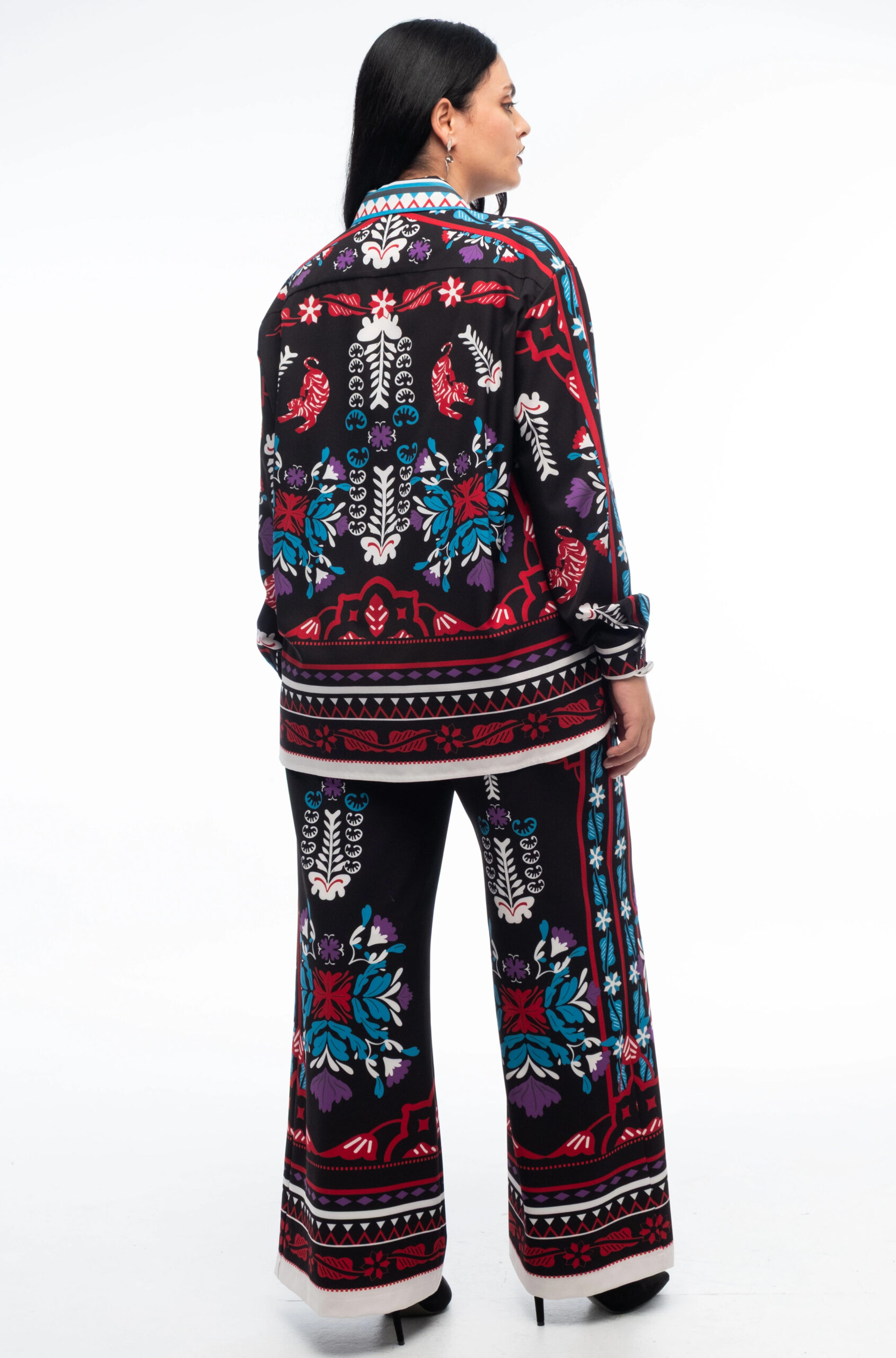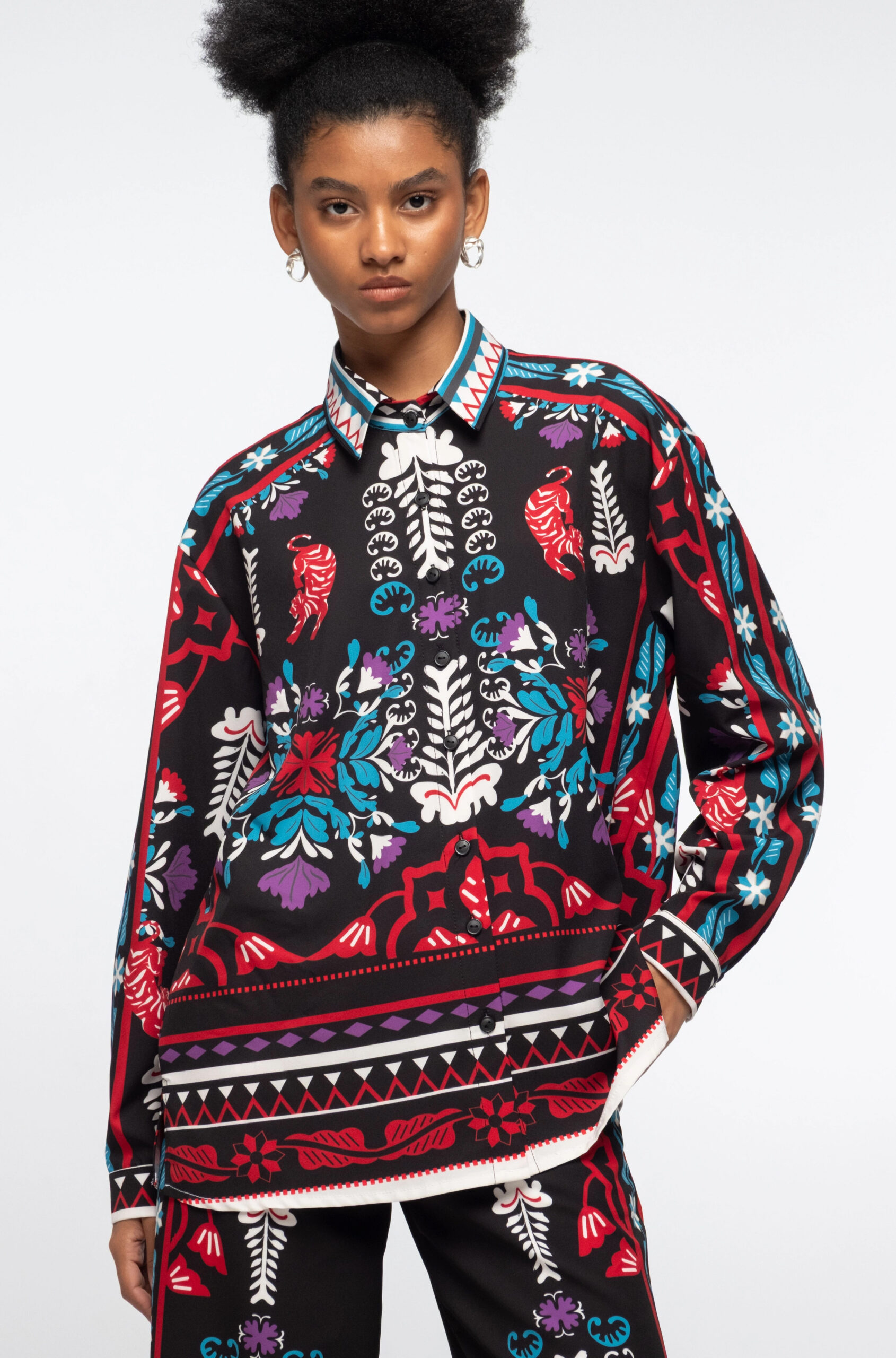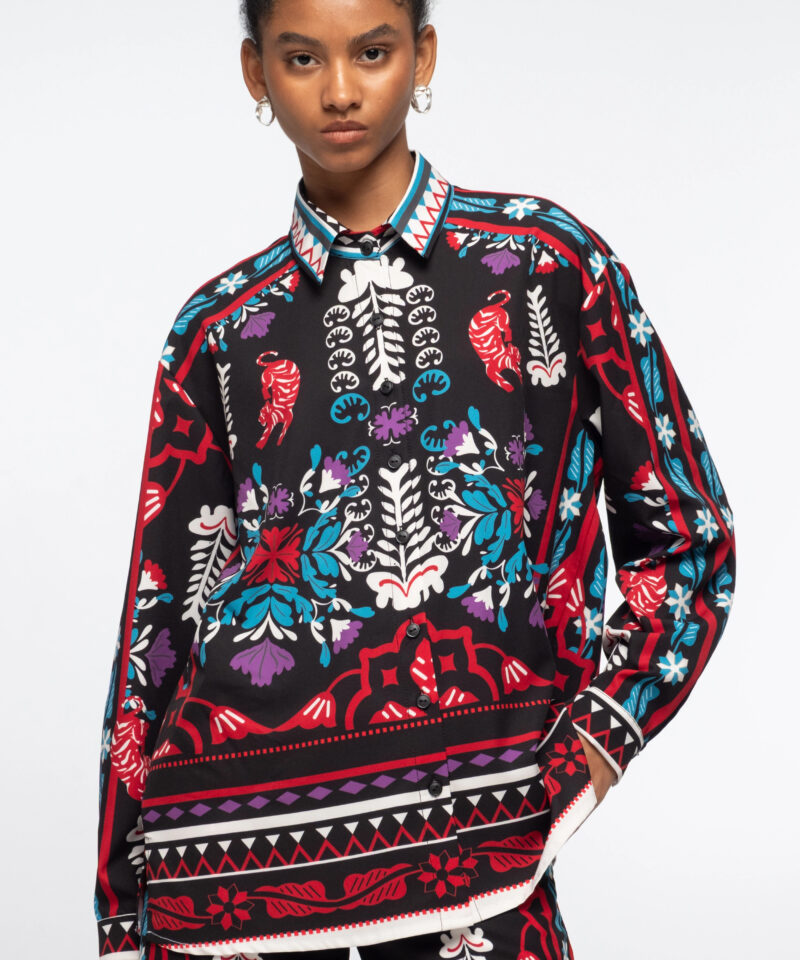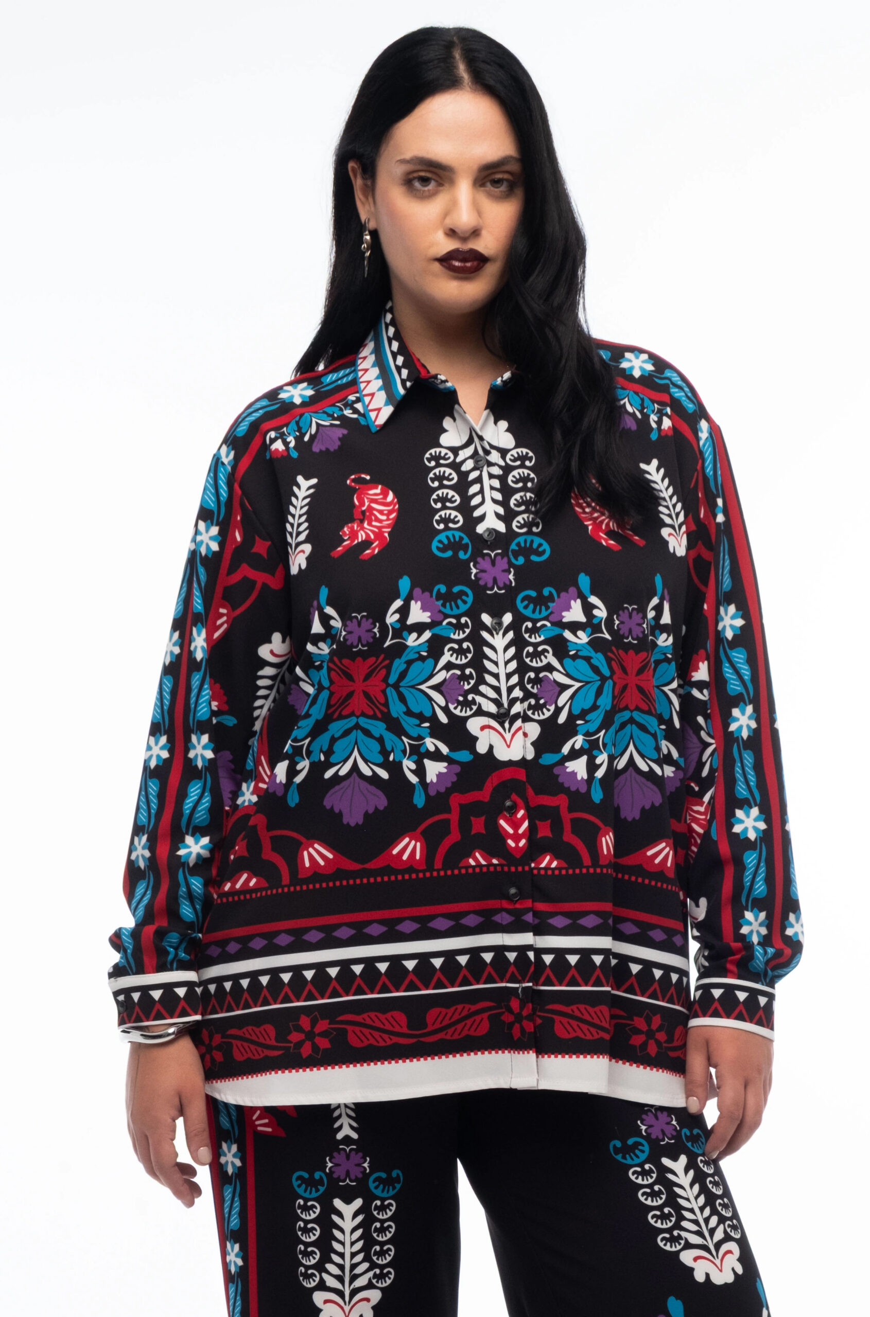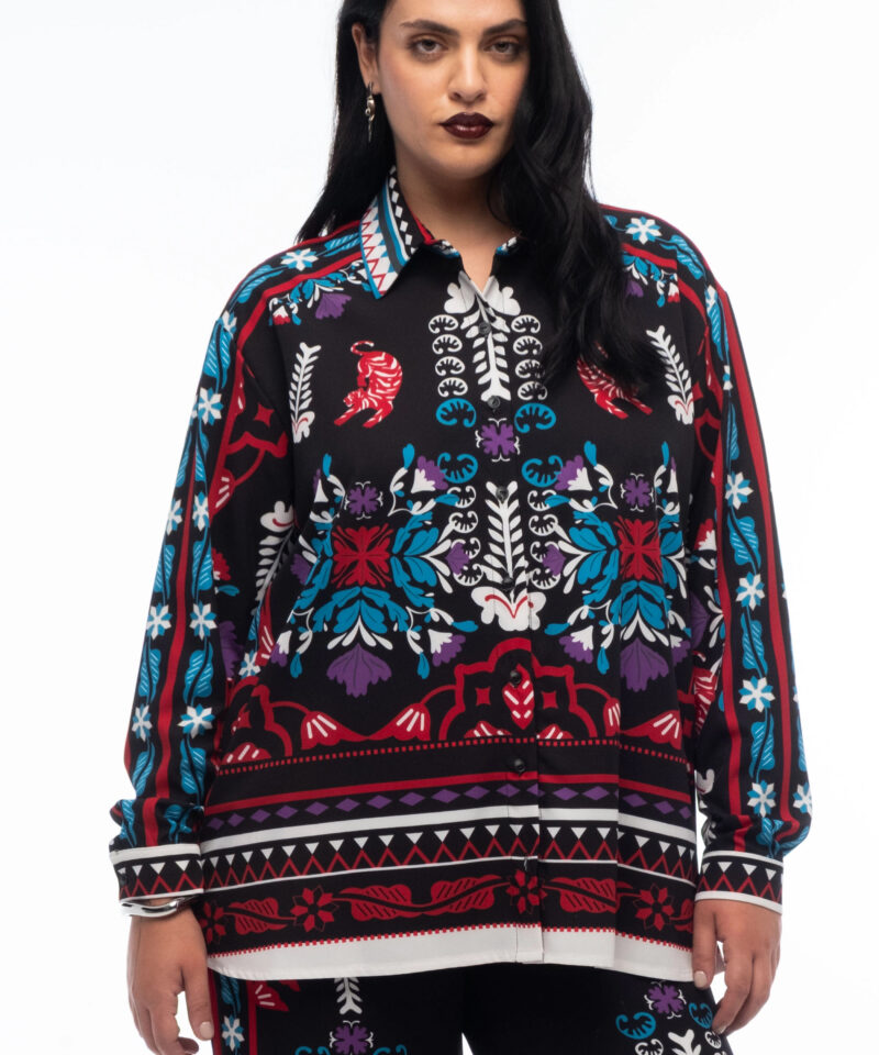 Κλασικό πουκάμισο σε χαλαρή γραμμή με εντυπωσιακό print με γεωμετρικές του λεπτομέρειες.