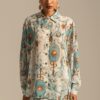 Στοιχεία αυτοπεποίθησης χαρακτηρίζουν το εξαιρετικά θηλυκό μας φόρεμα Narcissus. Τα φουσκωτά μανίκια 3/4 που τελειώνουν σε ελαστικές μανσέτες και η πλήρης φούστα αντισταθμίζονται από ένα γοητευτικό ντεκολτέ με εφέ περιτύλιξης και μια ασορτί ζώνη που δένεται στο πίσω μέρος που τονίζει τη μέση. Ένα σχέδιο τοποθέτησης πολύχρωμης χλωρίδας και πανίδας σε μαύρο χρώμα με ένα έντονο βοτανικό περίγραμμα αιωρείται σε αυτό το βαμβακερό μίντι φόρεμα από ποπλίνα με ελαστάνη, για άνεση. Ανακαλύψτε το εξαιρετικό σχέδιο αυτού του ενδύματος, κατασκευασμένο με την τεχνική τοποθέτησης. Κάθε μέρος του ενδύματος διαθέτει ένα μοναδικό σχέδιο και όταν συνδυάζονται, δημιουργούν ένα πραγματικό αριστούργημα.