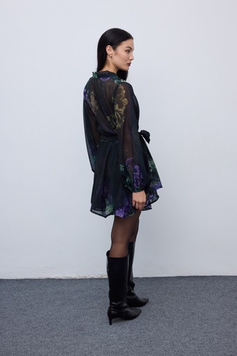 Μίνι Wrap φόρεμα από ελαφρύ ύφασμα και φαρδιά μανίκια.