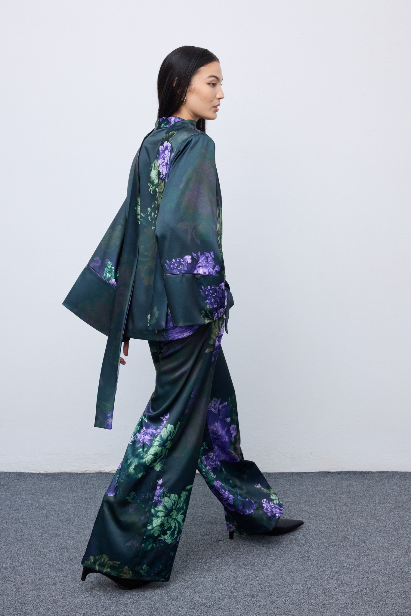 Pyjama Set από απαλό, ρέον ύφασμα.Διαθέτει χαλαρή σιλουέτα, φαρδύ παντελόνι και βαθύ ντεκολτέ V.